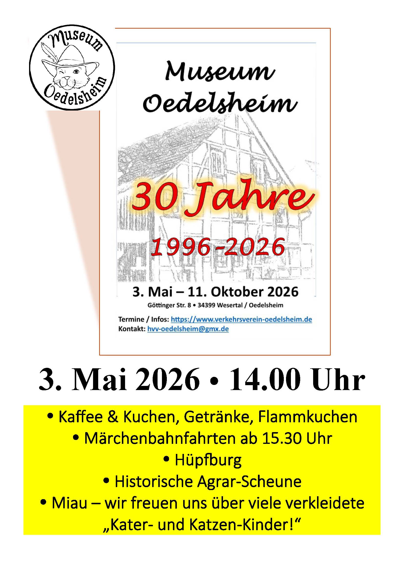 Seit genau 30 Jahren gibt es das Museum Oedelsheim – aus einer Idee heraus, dass die dörflichen Traditionen nicht einfach verschwinden, sondern an einem geeigneten Ort bewahrt und ausgestellt werden sollten. Diese Idee hat sich im Laufe der Jahre zu einem Kulturort entwickelt, der ständig erweitert und ausgebaut wurde. Zahlreiche Ausstellungen und Veranstaltungen hat das Museum seither gesehen; es ist ein Ort, an dem sich Vereine und Gruppen treffen, es dient als Standesamt der Gemeinde und als Archiv, u.a. für das Erbe der sudetendeutschen Heimatvertriebenen, die 1946 im Dorf eine neue Heimat fanden.